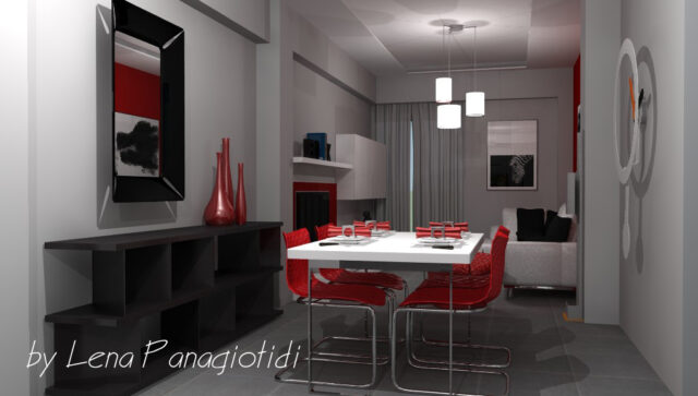 Η Μαρία και ο Άγγελος είναι ένα από τα ομορφότερα ζευγάρια που έχουμε συναντήσει. Μόλις αγόρασαν ένα κουκλίστικο διαμέρισμα, πρώτου ορόφου στον Κορυδαλλό για να στεγάσουν τον έρωτα τους και να δημιουργήσουν την δική τους οικογένεια. Παρόλο που τα τετραγωνικά μέτρα του διαμερίσματος δεν είναι αρκετά, η διαρρύθμιση του το κάνει να δείχνει κατά πολύ μεγαλύτερο. Τα δύο υπνοδωμάτια είναι ικανοποιητικά και η έλλειψη ενός δεύτερου μπάνιου εξισορροπήθηκε από την ύπαρξη μιας ευρύχωρης γεμάτης αποθηκευτικούς χώρους κουζίνα. Η λευκή τραπεζαρία και το άνετο καθιστικό με τον επιβλητικό γωνιακό δερμάτινο λευκό καναπέ στολίστηκαν με το κόκκινο χρώμα του πάθους. Οι αποχρώσεις του γκρι σε συνδυασμό με τις πολλαπλές επιλογές φωτισμού, λόγω ψευδοροφών, ζωντανεύουν το κόκκινο και τονίζουν το λευκό καθώς δημιουργούνται έντονες αντιθέσεις και παιχνίδια με το κοντράστ. Δεν έχουμε παρά να τους ευχηθούμε να ζήσουν πάντα ευτυχισμένοι.