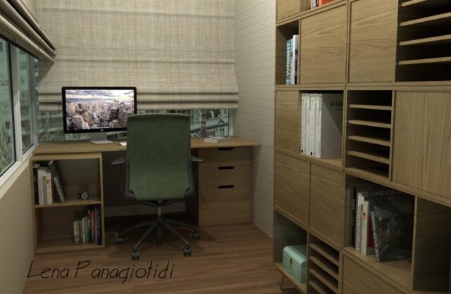 Ο Δημήτρης, επέστρεφε στο σπίτι εμφανώς ταλαιπωρημένος μετά απο ατελείωτες ώρες δουλειάς. Οι εργασιακές του υποχρεώσεις τους τελευταίους μήνες αυξήθηκαν και έπρεπε να δοθεί η κατάλληλη λύση. Μετά απο νομιμοποίηση του ημιυπαίθριου χώρου στο διαμέρισμα που κατοικεί, δημιουργήθηκε ένας όμορφος χώρος γραφείου που του εξασφαλίζει την απαραίτητη συγκέντρωση ενώ ταυτόχρονα θα απολαμβάνει την άνεση του σπιτιού.