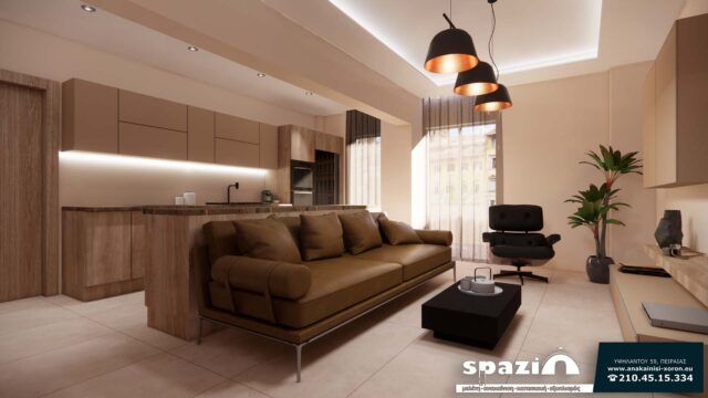 Ενιαίος χώρος κουζίνας – καθιστικού στον Βύρωνα.