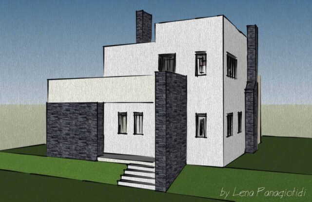 Τρισδιάστατος σχεδιασμός προσέγγισης εξωτερικών όψεων κατοικίας στα Επτάνησα